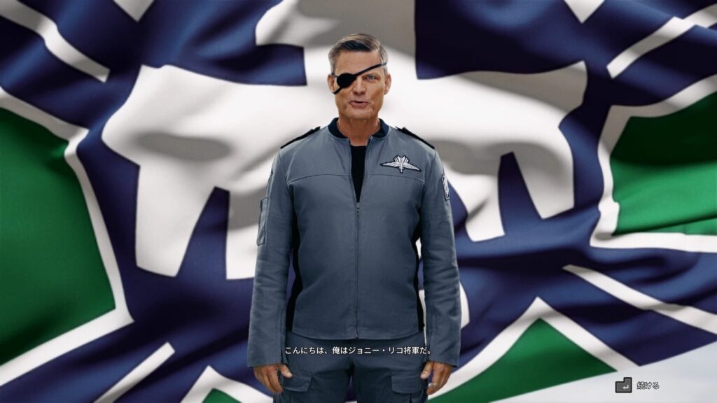 本作の最大の特徴は、ゲーム自体が作品世界内に存在する「連邦政府公認のリクルートツール」として設定されている点だ。オープニングでは、映画でおなじみのジョニー・リコ将軍(俳優キャスパー・ヴァン・ディーンが本人役で出演!)が「このゲームはFedDev(連邦開発局)が制作した訓練シミュレーターだ」と語りかけてくる。